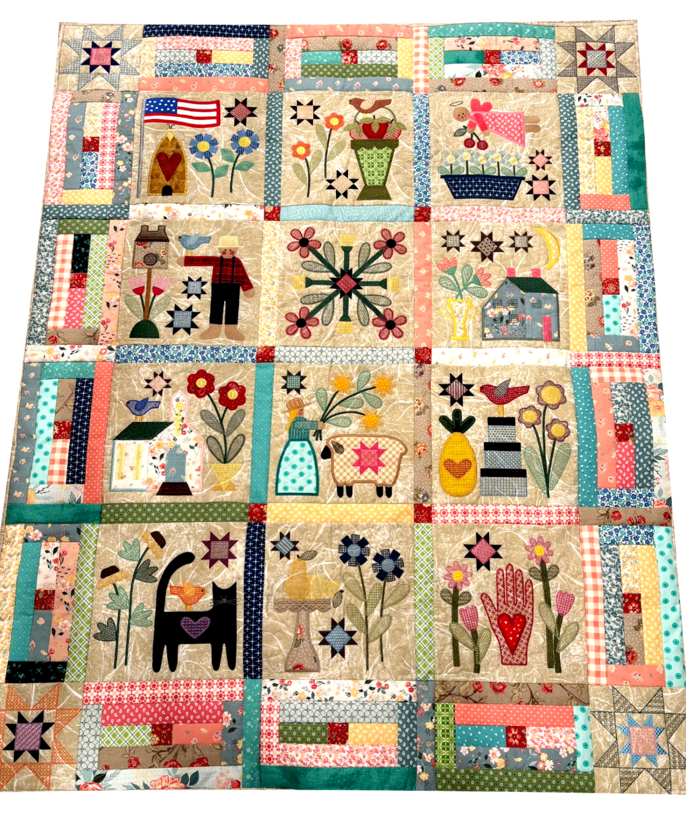Celebrate home, family, and tradition with 12 unique picture blocks stitched entirely in the hoop. Featuring Lori Holt's exclusive cover stitches, this quilt combines ITH piecing and machine embroidery applique for a timeless design offered in 3 sizes. This delightful project allows you to create a beautiful, heirloom-quality quilt utilizing your embroidery machine.